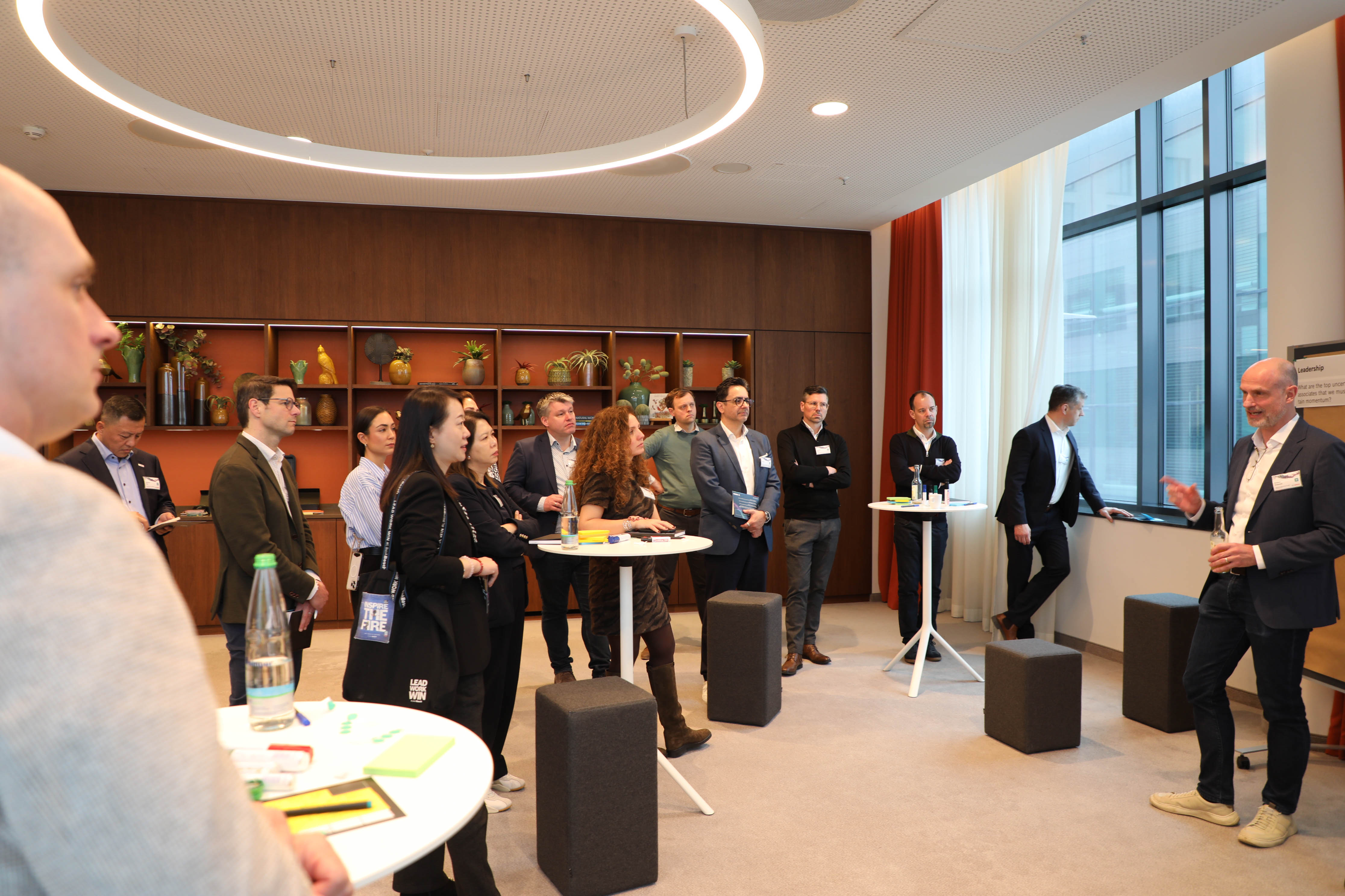Unser gemeinsam mit dem Kunden entwickeltes Konzept, umgesetzt im Mövenpick Messe+Congress Stuttgart (dank der Flughafenlage ideal für eine 1-tägige internationale Konferenz) stellte dann auch den kulturellen und fachlichen Austausch in den Vordergrund. Das Format konfrontierte die Teilnehmer in interdisziplinären Gruppen mit konkreten Managementaufgaben, für deren Lösungen dann internationale Best Practice Cases in einem offenen Marktplatz kennengelernt und herangezogen wurden.